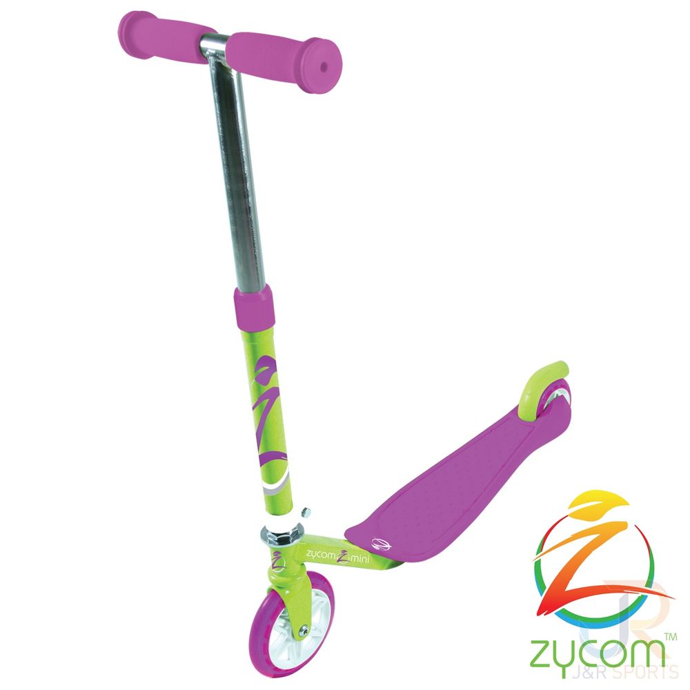 | Description | This eye catching little number is the Zycom Mini. Designed for the 3 to 5 year old rider the scooter features super cute colours and is available in 6 fun colour combinations for the pre-school child to choose from. The Mini scooter from Zycomotion is the smallest scooter available in the range and is the perfect first scooter for smaller children as the handle bar adjusts to two height settings and will grow with your child. The dual lock safety feature on the Zycom Mini means that the height cannot be adjusted by the rider. The wide one piece plastic deck has a textured, non-slip pattern to provide a secure and sure footing for smaller feet and features an easy to operate, quick stop brake that will bring the rider to a slow and controlled stop. Features: Dual locking feature which secures bars safely in place. Two height settings. Perfectly sized grips for little hands with hardwearing plastic bar ends. Non slip deck. Specification: Screw cap collar clamp Plastic bar ends Wide one piece plastic deck 120mm 85a wheel Steel steering fork |