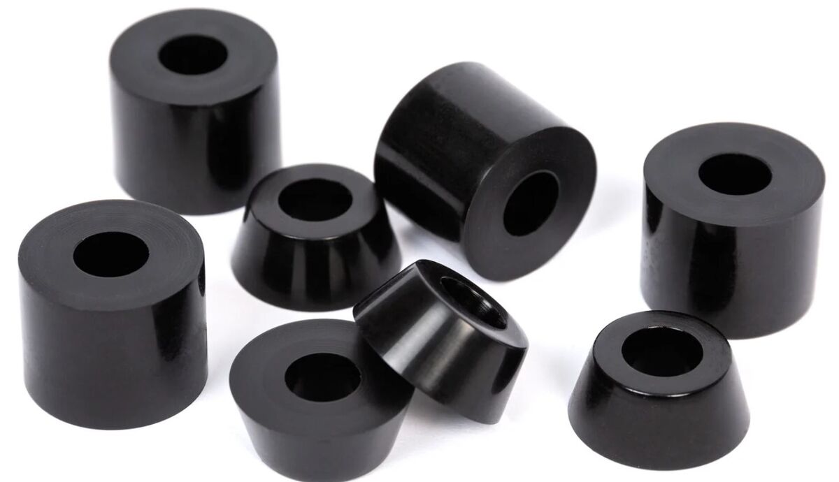 | Description | Price is for 4 x Barrel cushions and 4 x Conical cushions. Galaxy Evo Cushions 80, 19mm /10mm aka "bushings" are made of polyurethane (PU) in a 80A hardness. No matter if you need more stability and control or increased agility, the Galaxy Evo cushions will do their job. They fit perfectly with Chaya Galaxy Evo plates which are mounted on the Chaya Melrose Deluxe series skates starting from 2022 or some of the Chaya vintage skates of the 2022 collection. Chaya Galaxy Evo cushions 92 aka "bushings" are made of polyurethane (PU) in a 92A hardness. No matter if you need more stability and control or increased agility, the Galaxy Evo cushions will do their job. They fit perfectly with Chaya Galaxy Evo plates which are mounted on the Chaya Melrose Deluxe series skates starting from 2022 or some of the Chaya vintage skates of the new 2022 collection. Price is for 4 x Barrel cushions and 4 x Conical cushions. |